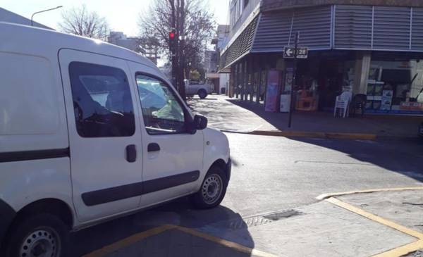 La esquina de 44 y 28 es un foco de infracciones de tránsito, como la que se observa en la foto, donde una camioneta estacionó en la ochava, sobre la senda peatonal y obstaculizando una rampa para discapacitados. Muchos realizan esta práctica que transgrede las normas viales para concurrir a los comericos de la zona o ir al cajero automático, provocando inconvenientes.