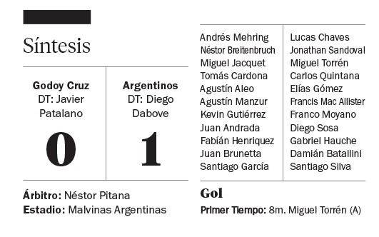 Argentinos Juniors le ganó a Godoy Cruz, en Mendoza, por 1 a 0, en un partido correspondiente a la sexta fecha de la Superliga, y continúa invicto en el torneo con tres victorias y tres empates.