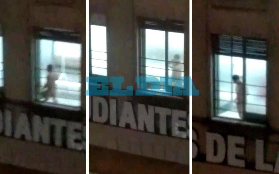Un hecho inusual se registró la semana pasada en la sede de Estudiantes de La Plata del lado de calle 54 entre 7 y 8 cuando un hombre se exhibió desnudo desde una de las ventanas de la planta alta y fue filmado por un grupo de vecinas.