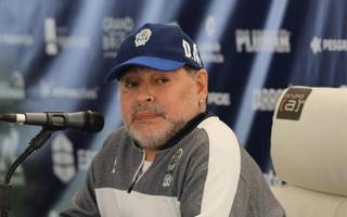 Maradona hizo el mismo caminito una y otra vez... una y otra vez, del banco a la línea de cal. Habló con Méndez a la hora de pensar en los cambios, y a los tres futbolistas que sacó (Pablo Velázquez, Maximiliano Comba y Franco Mussis), los esperó al costado del campo de juego para saludarlos y abrazarlos.