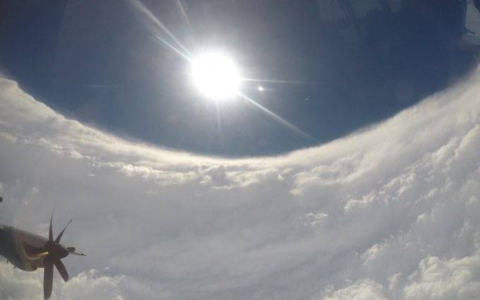 En una misión el avión cazatormentas NOAA 42 captó las primeras imágenes del interior del huracán Dorian, donde se pudo apreciar claramente el “efecto estadio” que se forma por las nubes.