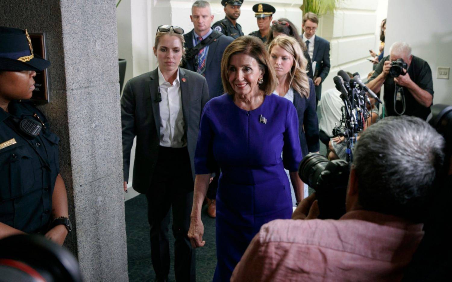 "Hoy anuncio que la Cámara de Representantes inicia de manera oficial una investigación de juicio político", apuntó Pelosi en una declaración a la prensa, después de reunirse con legisladores demócratas de la Cámara de Representantes.