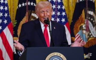 el presidente trump bajando ayer del air force one / ap