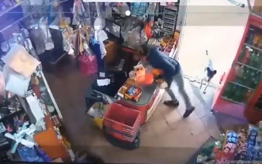 1. Los dos menores ingresan al supermercado. Uno de ellos no pierde tiempo y comienza a sustraer mercadería y a golpear la caja. Su cómplice se acerca al dueño para robarle.