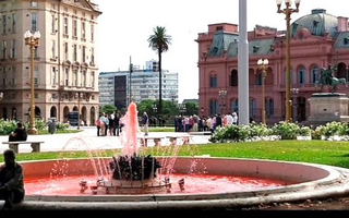 El agua de dos fuentes de la Plaza de Mayo, que al mediodía fueron limpiadas por el gobierno porteño, amanecieron teñidas de rojo, según reportaron con fotografías usuarios de la red social Twitter que estimaron representaba la sangre de Nisman.