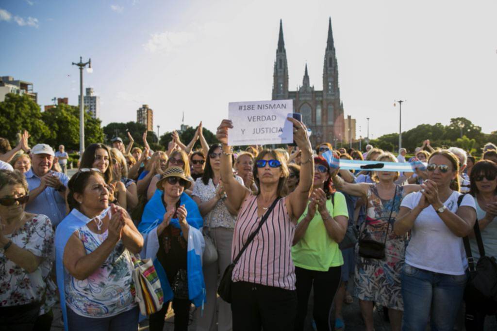 La convocatoria fue encabezada por ciudadanos sin identificación de partidos políticos, en su mayoría mujeres. Algunas eligieron portar banderas argentinas, otras lucían cintas negras, y carteles con reclamos de “Verdad y justicia” por la muerte del fiscal.