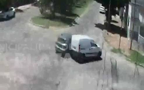 Los agentes del Centro de Operaciones y Monitoreo (COM) de la Comuna observaron que un auto gris que circulaba por calle 27 impactó con un vehículo blanco marca Renault, modelo Kangoo, que iba por Avenida 38, el cual terminó subiendo a la vereda.
