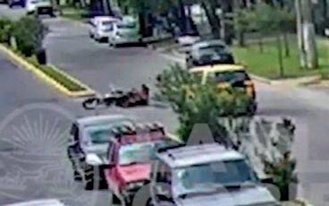 Un motociclista fue protagonista de un accidente de tránsito que tuvo lugar en avenida 31 y 511, y quedó registrado en las cámaras de seguridad de la Municipalidad de La Plata. Por los golpes sufridos, debió ser atendido por el SAME.