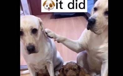 En un vídeo publicado en TikTok, un dueño le pregunta enfadado a sus labradores quién fue el responsable de un destrozo doméstico. Seguramente, la responsabilidad fue compartida, pero uno de ellos no quiso hacerse cargo.