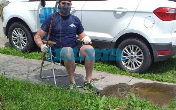 Siguiendo la línea del pícaro mote que usan para referirse a este problema de infraestructura, el vecino decidió, a modo de protesta, salir con su silla playera a la calle y posar con una caña de pescar, claro, respetando un protocolo sanitario para reducir el nivel de contagio de Covid.