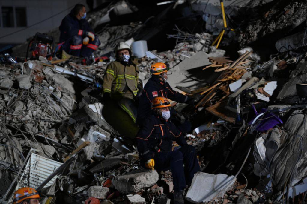 En Bayrakli, en la provincia de Esmirna, los equipos de rescate, con perros rastreadores, intentaban llegar anoche a las víctimas y posibles sobrevivientes entre las masas de vigas retorcidas y grandes trozos de hormigón de un edificio que cayó como un mazo de naipes.