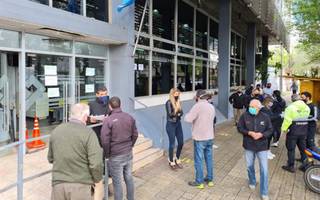 En una nueva recorrida que esta mañana realizó EL DIA en la sede de 20 y 50, se pudieron ver filas de personas que cumplían en el lugar con todas las medidas de bioseguridad exigidas para evitar contagios de coronavirus, como el distanciamiento físico entre las personas y el uso de cubre bocas ya sea por parte de los asistentes como de los empleados.