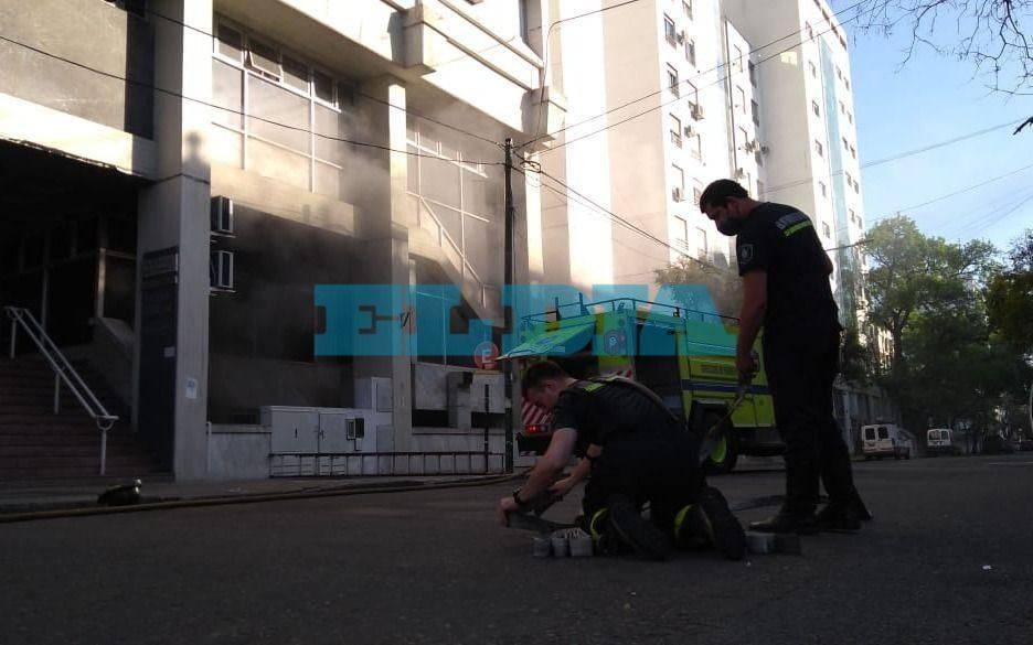 El siniestro comenzó en el subsuelo del edificio donde está emplazada una sucursal del Banco Provincia y también hay cajeros automáticos. En la planta baja y en los pisos posteriores, funcionan -entre otras dependencias-, varios de los juzgados del Fuero Laboral provincial. A su vez, las llamas también afectaron a parte de la planta baja y el primer piso.