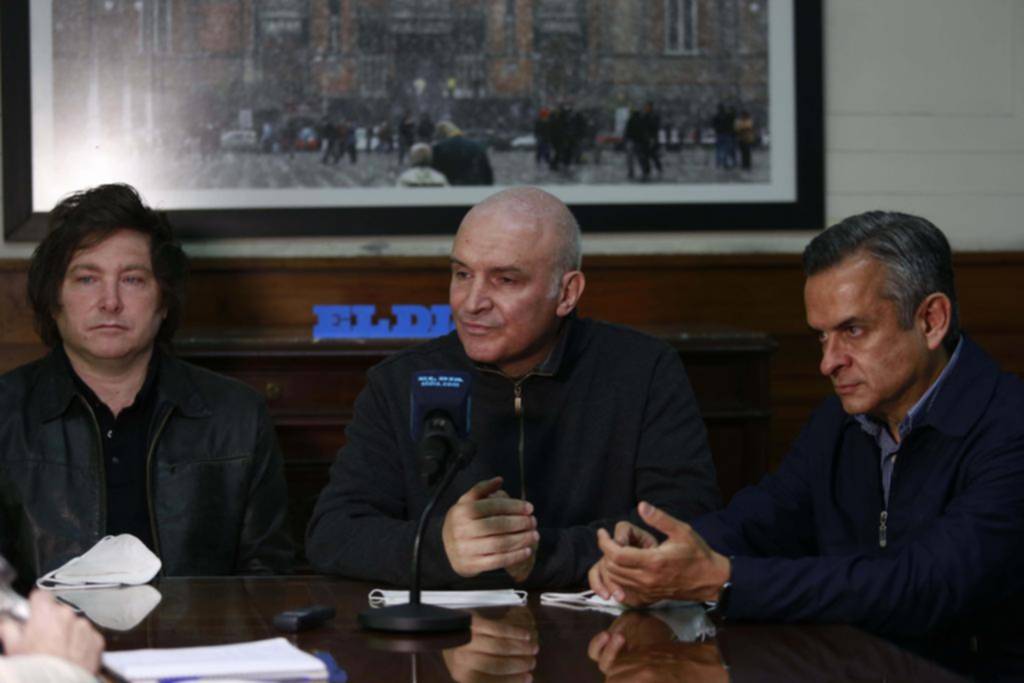 Espert realizó una actividad de campaña que culminó en Plaza Moreno y en ese marco visitó EL DIA junto a su ex compañero de fórmula presidencial, Luis Rosales, y el economista Javier Milei, que competirá en Capital Federal.