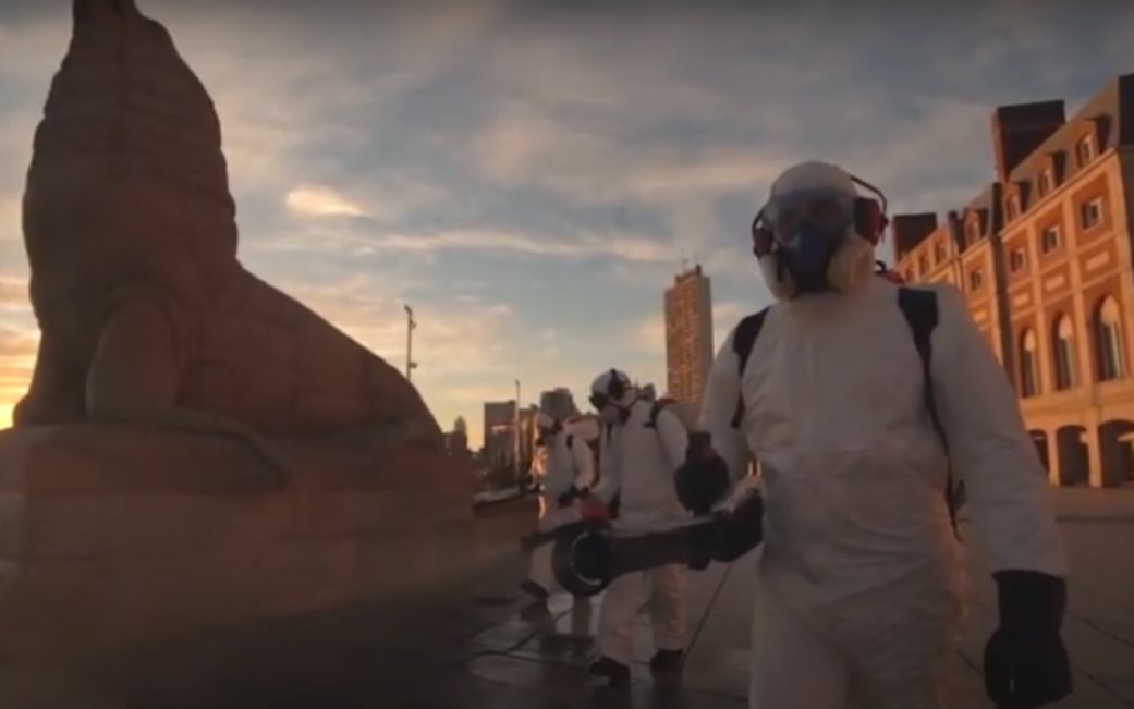 La imagen parece sacada de una película de ciencia ficción. Al lado de la emblemática escultura del lobo marino y con el Hotel Provincial y el Casino de fondo, tres hombres vestidos con trajes de protección blancos y mochilas de fumigación. Y abre el video con el que la ciudad de Mar del Plata busca enviar un mensaje a los turistas de cara a una temporada que estará marcada por los protocolos y los cuidados para intentar evitar un brote de coronavirus.