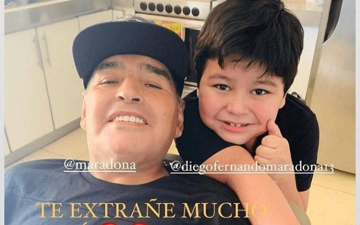 "Te extrañé mucho", es el mensaje que acompaña a la imagen, la segunda que conoce de Maradona tras su internación en la clínica Olivos.
