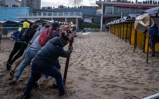 Cuando parecía que la protesta había llegado a su fin, un grupo bajó al sector de playa y comenzó a romper las estructuras que conforman el sector de sombra del balneario privado.