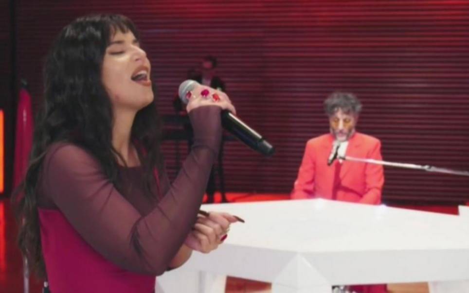 Páez y Peluso se presentaron desde el Centro Cultural Kirchner. Páez, de rojo y frente a un piano blanco, arrancó con "La conquista del espacio", para luego darle paso a Nathy quien luego de unirse en el canto cerró con unos pasos muy a su estilo mientras los acordes tangueros sonaban de fondo.