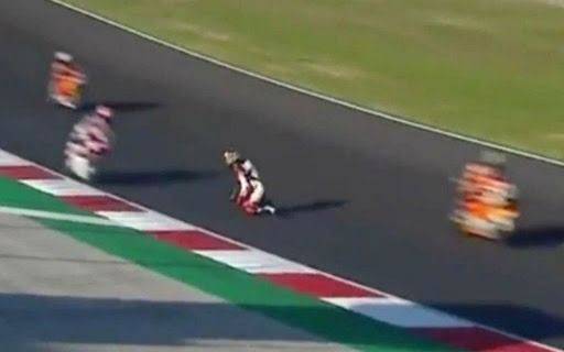 Un piloto de MotoGP protagonizó la escena más escalofriante del fin de semana cuando tras caer de su máquina quedó arrodillado en plena pista mientras el resto de los competidores pasaban a su lado a toda velocidad.