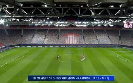 El primer minuto de silencio en una cancha de fútbol, por Diego Maradona: se dio en la previa de Olympiacos vs. Manchester City en la #CHAMPIONSxESPN. pic.twitter.com/6HWxbG2ou1