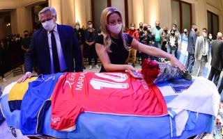Mientras tanto, desde afuera llegaba el cántico de medio millar de "hinchas de Diego" que entonaba algunas estrofas del tema "La Mano de Dios", del fallecido cantante de cuarteto cordobés, Rodrigo Bueno, rodeado de varios cordones policiales.