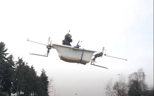 Uno de los más llamativos es el de la bañera voladora hecha con drones. Pero eso no es todo porque en el video muestran hasta como van a buscar comida en este inusual transporte.