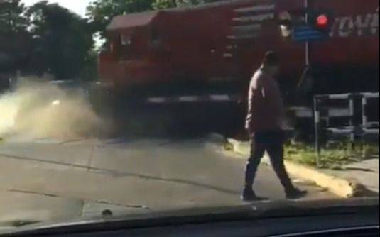 El accidente quedó grabado en un video en el que se ve al conductor cuando se le detiene el auto en el paso a nivel de la calle Olazábal.
