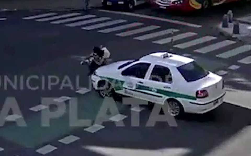 Una ciclista resultó con raspones y se llevó flor de susto al ser atropellada por un taxi esta mañana.