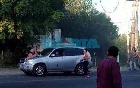 Fue en este marco que, tras una discusión, el automovilista avanzó mientras una mujer se iba subiendo al capó. En el material fílmico que retrata este momento se puede ver cómo el vehículo avanza con la mujer subida en el capó. Luego se observa al vehículo frenar para posibilitar el descenso de esta persona, momento en que termina siendo ferozmente atacado.