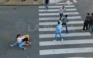 Luego, todo se hace más confuso, con varios cruces de golpes entre varones y una pelea entre las dos mujeres. Cuando caen al pavimento e intercambian golpes, un varón se presenta a separar. Otro parece impedírselo. Al final, se ponen de pie y se separan. En segundos vendrá lo peor de la agresión.