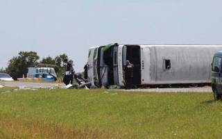 Dos muertos y más de 30 heridos, tres de ellos de gravedad, causó esta mañana el vuelco de un micro de pasajeros de doble piso en la autovía 2.
