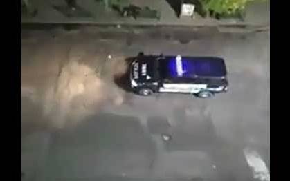 "En el marco de la emergencia sanitaria por el Gobierno Nacional, el Ministerio de Seguridad de la Nación informa: 'Se deberán respetar las medidas de distanciamiento social evitando aglomeraciones de personas y limitando la circulación. Recordar que cuidarse es cuidar a todos"', fue el mensaje que lanzó la camioneta de la PFA.