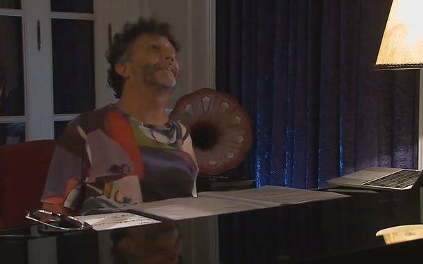 A solas con su piano, una vitrola como único decorado de fondo y varias partituras desparramadas sobre su instrumento, el rosarino fue eligiendo sobre la marcha el material a tocar, lo cual generó un notable desequilibrio en el nivel de sus interpretaciones, entre aquellas canciones que evidentemente venía ensayando para su postergado show y las que abordó como si estuviera en un fogón.