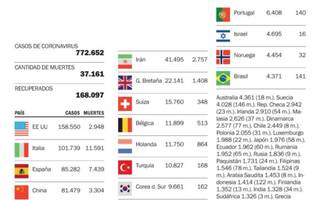 En cuanto al número de contagios, España superó a China, que registra 81.479. El incremento en 6.398 positivos representa un 8% más que el día anterior, lo que significa que el país registró cinco días de descenso porcentual consecutivo de nuevos casos.