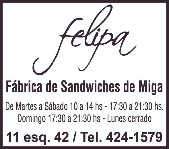 Ubicado en 11 esquina 42, Felipa te espera con los más frescos sandwiches de miga. Elaboración en el momento asegurada.