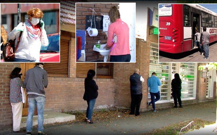 Este panorama puede verse en otros lugares, como en los cajeros automáticos o en la parada de los colectivos. Estos últimos, a su vez, lucen semi vacíos, ya que los pasajeros se sientan muy distanciados uno de otros. En estas unidades de transporte, además, ya es obligatorio que la gente viaje sentada. Y, como si fuera poco, el acceso a los micros debe realizarse por la puerta trasera. La idea, como en todos los casos, es cuidarse lo máximo posible del Covid-19.
