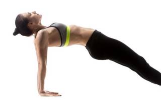 3) Se levanta el cuerpo con los brazos, haciendo una línea recta desde la cabeza hasta los talones y se contraen los abdominales para evitar que se hundan las caderas.
