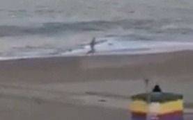 Un hombre se metió al mar completamente desnudo, luego corrió por la orilla y se aseguró que otra persona lo filmara en lo que se cree fue el cumplimiento de una apuesta que debió pagar.