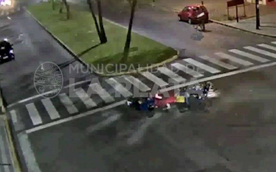 Las cámaras de seguridad de la Municipalidad de La Plata registraron cómo, tras una mala maniobra, dos repartidores en moto chocaron en la intersección de las avenidas 19 y 51.