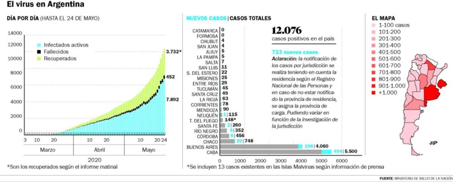 Siete personas murieron y 723 fueron diagnosticadas con coronavirus ayer en el país, lo que constituyó un nuevo récord de detecciones en una sola jornada. Con los nuevos reportes suman ya 452 los fallecidos y 12.076 los casos positivos desde el inicio de la pandemia a nivel nacional.
