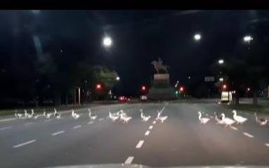 Un platense vivió en las últimas horas un momento muy especial y atípico luego de que se cruzara con una bandada de gansos en una transitada avenida de la Ciudad de Buenos Aires que obligó a que se detuviera el tránsito por completo.