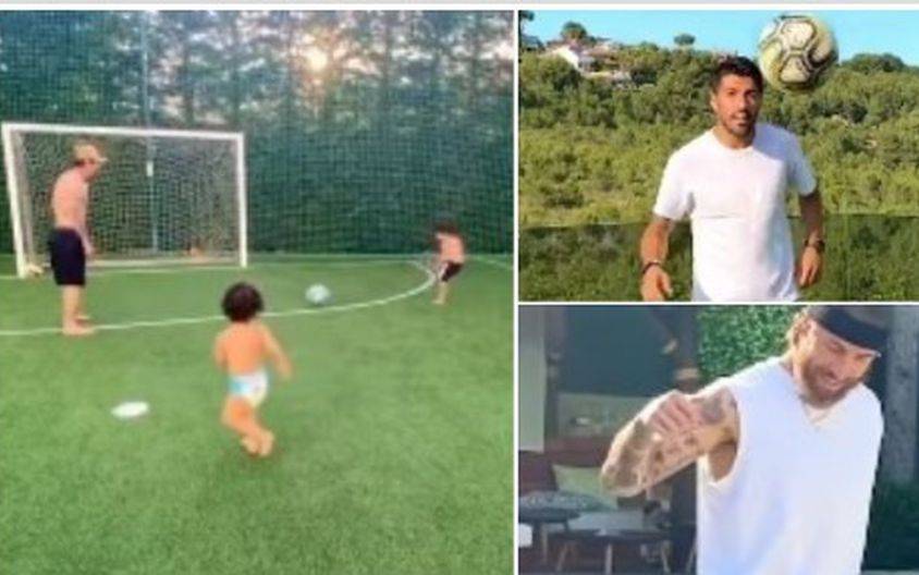 También aparecen Luis Suárez con el balón en la comodidad de su hogar junto a su esposa, Sofía Balbi, con quien se anima a bailar.