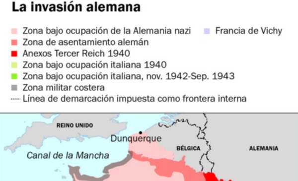 Tras el armisticio, tres quintas partes del norte y el oeste del territorio francés eran zona ocupada, mientras que el resto seguía siendo soberano.