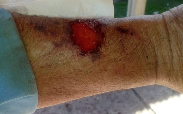 En ese contexto se produjo un fuerte incidente, Tiberio quiso bajar del auto para explicar la situación y de algún modo enfrentar a la persona que lo insultaba pero éste le impidió salir y se produjo un forcejeo en el que el jubilado recibió una seria lesión en un brazo, producto de la fricción y el roce con un deflector del coche.