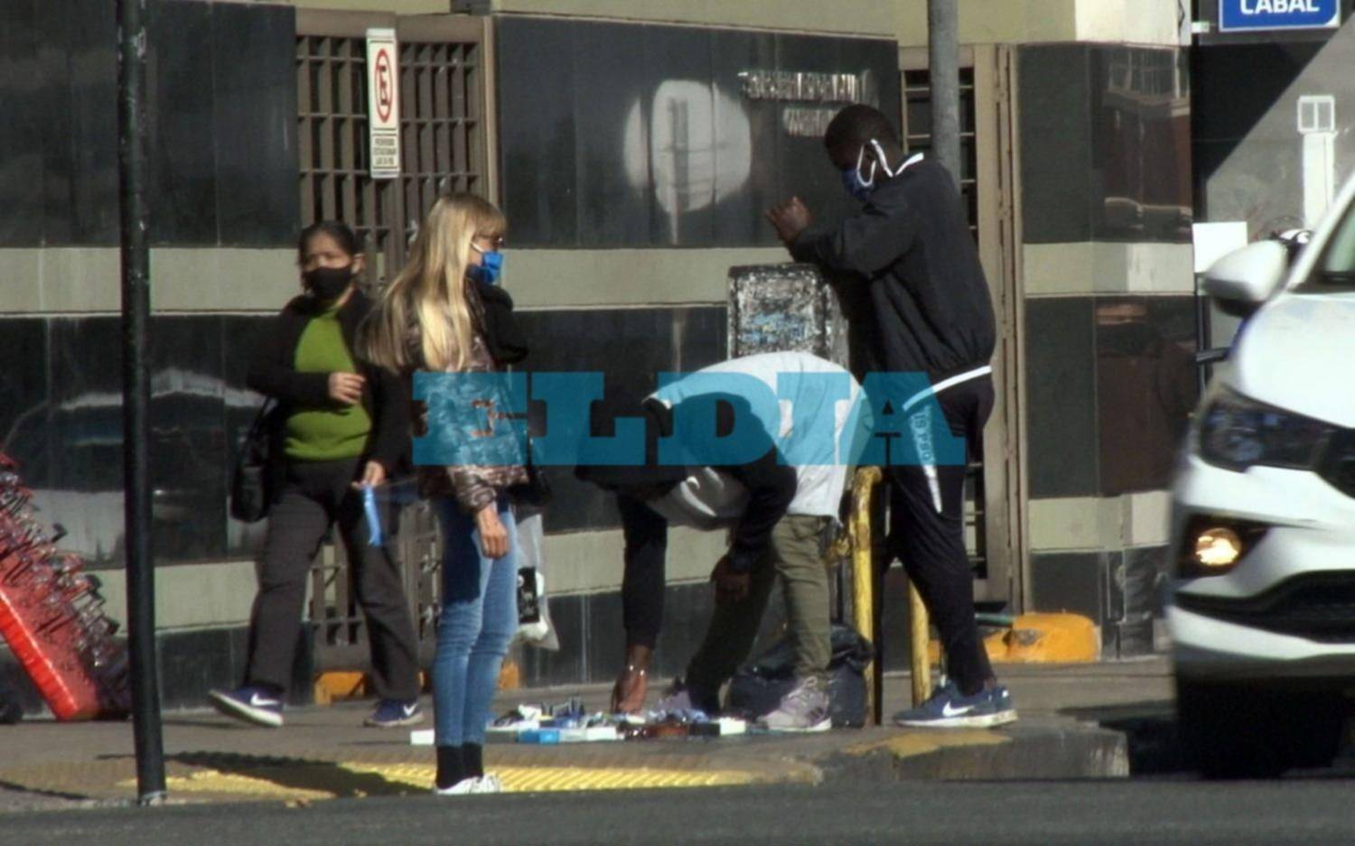 A pesar de que los comercios trabajan con las persianas a medio levantar o que incluso algunos se encuentran totalmente cerrados ante el impedimento de poder vender sus productos debido a la medida de confinamiento por el Covid 19, la venta ambulante sigue adelante en el centro platense.