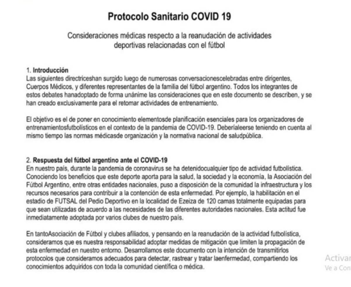 El procedimiento elaborado por la entidad madre del fútbol argentino, corresponde específicamente a los clubes de la Primera División y sobre esa base será elaborado otro protocolo para las categorías de ascenso.