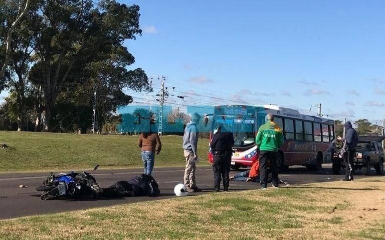 Un accidente entre una camioneta y una moto, en la cual viajaban dos ocupantes que terminaron tirados sobre la cinta asfáltica, se produjo a primera hora de la tarde de ayer en Camino Centenario y 478.