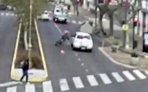 Las imágenes quedaron registradas por las cámaras de seguridad de La Municipalidad de La Plata. El trabajador de delivery perdió el control de la bicicleta en la que se trasladaba y cayó sobre un vehículo que circulaba en el mismo sentido.
