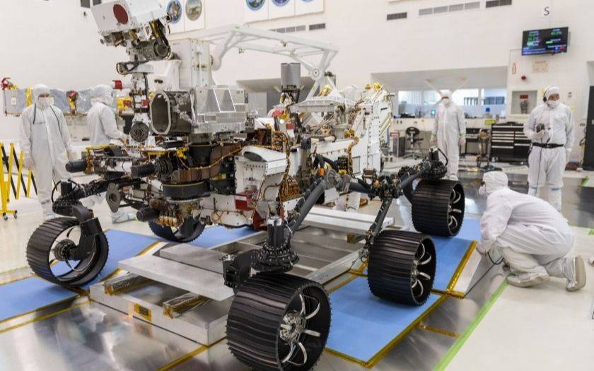 El vehículo mide tres metros de largo, pesa una tonelada, tiene 19 cámaras, dos micrófonos -una novedad- y un brazo robótico de dos metros. Un generador de plutonio cargará sus baterías. Una vez en Marte, la Nasa intentará hacer despegar el helicóptero Ingenuity, de 1,8 kilos, en el aire marciano, denso como el 1% de la atmósfera terrestre. El objetivo es demostrar que es posible.