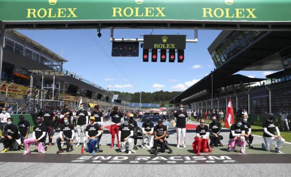 La mayoría de los pilotos de la Fórmula 1, encabezados por Lewis Hamilton, dejaron en claro ayer su apoyo a la lucha contra el racismo y se manifestaron con la rodilla contra el suelo en la previa de la largada del Gran Premio de Austria.